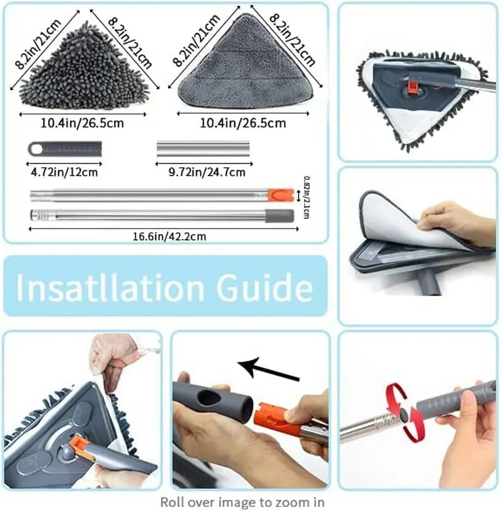 Reach every corner and angle—even behind furniture or in ceiling corners—thanks to the smart, rotating triangular mop head.